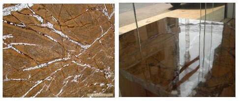 二、對于材質(zhì)極不均勻的熱帶雨林、海浪花、萬象云天等大花石材先通過鋼化加硬,確保強度均勻,再利用能快速結(jié)晶的特殊小分子材料對凹陷部位進行物理填補,提高終飾面的相對平整度。坊間傳聞的玻化、鋼化都是這個原理。